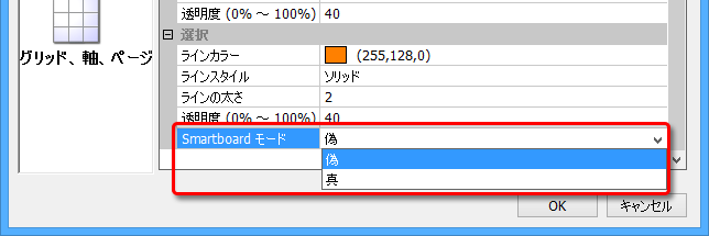 Smartboard モードを有効にするには、編集 > 環境設定 > 選択を選択します。この選択グループの中にある Smartboard モードを真にします。
