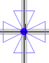 x 軸と y 軸は、2つの無限遠直線が垂直に交わったものです。いずれかの軸に十字カーソルを配置すると、その交点に通過点記号 (蝶ネクタイ) が表示され、その軸はハイライトで表示されます。