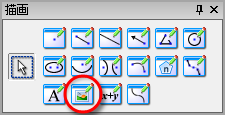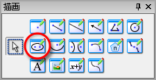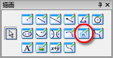 描画ツールボックスには、描画コマンドと選択矢印が用意されています。描画コマンドは描画メニューから呼び出すこともできます。