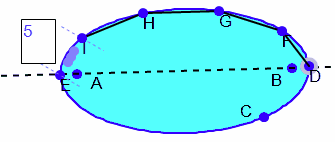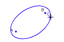 作成した楕円には、3つの点が表示される点に注目してください。そのうち2つは焦点、もうひとつは、楕円の周上に表示されます。