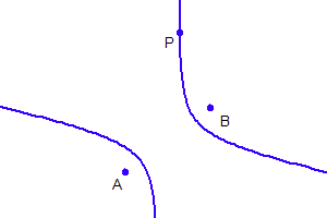 作成した双曲線には、3つの点が表示される点に注目してください。そのうち2つは焦点、もうひとつは、双曲線の周上に表示されます。