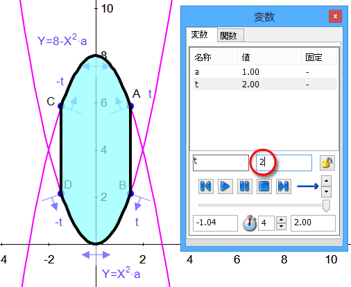 ハンドルを動かすたびに、変数ツールボックスに表示される値が変化する点に注意してください。