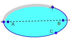 注意:曲線の描画に際しては、曲線上にある既存の点は避けて描画するのがベストです。そのようにした上で、近似点に他の図形を接続してください。弧の始点または終点を曲線上の点にすると (例:上図の楕円の点 C など) 、後で曲線近似を削除する場合に、それを接続した図形も一緒に削除されてしまいます。