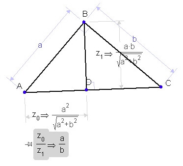2つの長さの関係を求める数式は、z0 / z1 です。システムはこの数式を => a/b として即座に評価します。