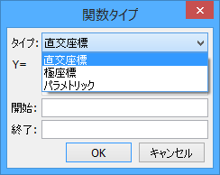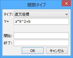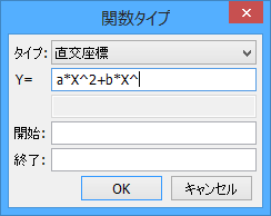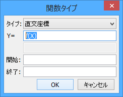 関数タイプダイアログから直交座標を選択すると、次の行には Y についての関数の一般式が入ります。