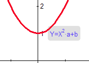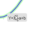 最初の例は、曲線をクリックして y 切片に b ハンドルが表示させたものです。関数を上下に移動することができます。曲線上の別の位置をクリック&ドラッグすると、a ハンドルが表示され、曲線の形状を変更することができます。