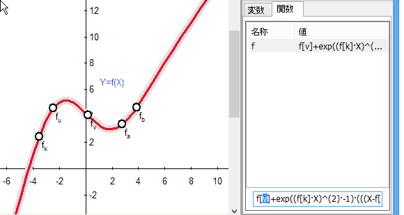 ・関数を描画した後は、関数タグをダブルクリックすると編集ボックスで内容を変更できますので、これによって関数を変更することができます。