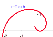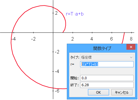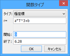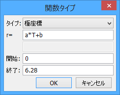 関数タイプダイアログで極座標を選択すると、次の行には極角を T とする動径座標 r についての関数の一般式が入ります。