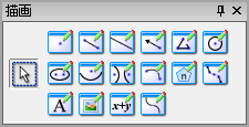描画ツールボックスには、描画コマンドと選択矢印が用意されています。描画コマンドは描画メニューから呼び出すこともできます。
