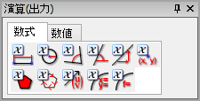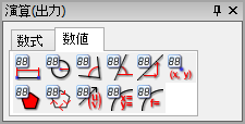 Geometry Expressions では、ユーザーの指定した任意の条件や作図、または、単純な図形に基づいて、図形内の演算を行うことができます。演算結果は、数式または数値で、それぞれ該当するタブを選択することで出力できます。