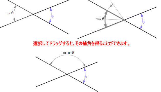 角度記号をマウスでドラッグすれば、その補角を求めることができます。