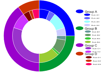 ドーナツプロットは、統計グラフの新しいタイプのひとつです。ドーナツのすべてのカテゴリは、円グラフと同様、全体の百分率で表現されます。ドーナツプロットでは、複数のデータを積み重ねてそれらを容易に比較することができます。
