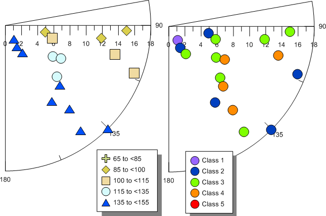分類プロットに新たに追加された機能を使えば、分類プロットの全てのクラスを数値やテキストを元に作成することができます。テキストには、確率的分類、群の名称、採集者の名称、学名など、任意の変数情報を利用できます。各クラスをあらわすシンボルを変更すると、目的とする任意のシンボルの属性を変更できます。分類プロットの強化では、更に、クラス数が 300 に増加しました。あらゆる側面からお持ちのデータを制御できるようになったことになります!