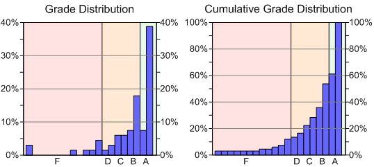累積ヒストグラムで表示されるのは、ヒストグラムの各階級 (ビン) に直前の階級を追加したものです。これにより、データの特性を別の角度で要約する情報を追加することができます。チェックボックスを選択するだけで、累積値が計算され、それらの値がヒストグラムに表示されます。