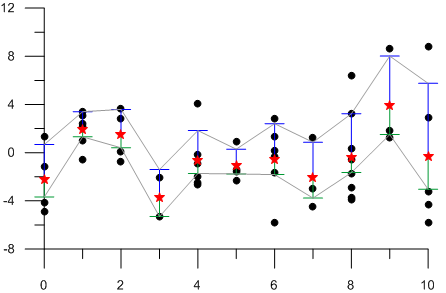 エラーバーは、作成したグラフ全体の中の1つのデータ集合に関する情報を表示するものです。しかし、このエラーバーの傾向も、データそのものの傾向を分析するのに役立ちます。新バージョンの Grapher で向上したエラーバー機能を使えば、正と負の値を異なる統計情報で表示できますので、お持ちのデータを自由に制御して、様々な角度であらわすことができるようになります。