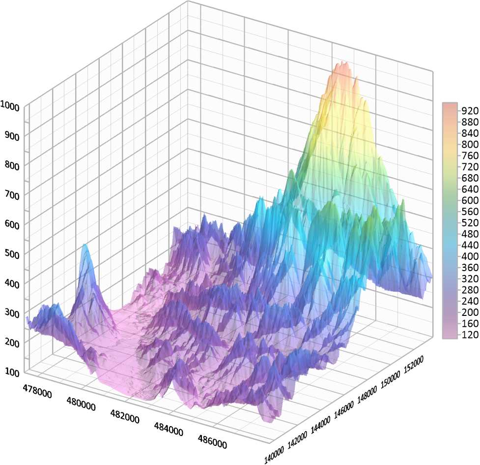 透明度を適用した 3D Surface Grid プロットの例