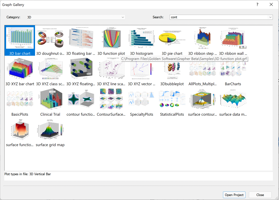 Grapher の目指す使命は、何よりもまずビジュアル・コミュニケーションのためのツールであることです。膨大なリストから目的とするファイルをその名称を頼りに選んだとしても、それが本当に作業したいファイルであるのかは実際に開いてみないと分からないようではいけません。新たに追加された Graph Gallery を使えば、プロジェクトファイルをいちいち開く必要はありません。コンパクトに表示されるプロットを見ながら目的のファイルを検索したり絞り込むことができます。
