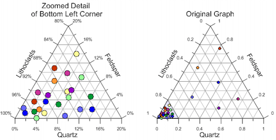 三角プロットの表示領域を指定することができます。データに偏りがあるとき、重要な領域を拡大して表示するように設定することができます。