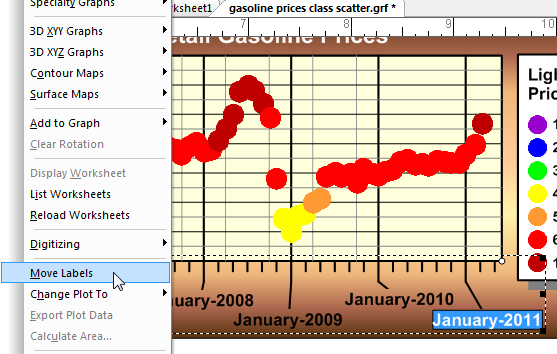 複数のラベルが重なっていても素早く簡単に移動させることができます!Grapher はこれまでも、プロットラベルについてはマウスでクリックしてドラッグさせることはできましたが、新しい Move Labels コマンドを使用すれば、軸ラベル、軸タイトル、グラフタイトルをマウスをクリックしてドラッグさせるだけで好きな位置に配置できます。操作は簡単です。オブジェクトをマウスでクリックして、このコマンドを選択したら、どこでも好きな位置にラベルをドラッグすることができます。