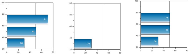 Clipping タブにあるオプションを使用して、折れ線グラフ、散布図、棒グラフの一部を切り抜くことができます。切り抜き (Clipping) を指定した値で折れ線グラフ、散布図、棒グラフを描画したり、プロットの領域外にある値を削除することができます。