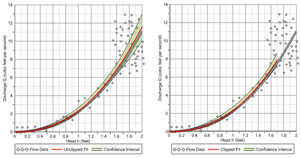 Clipping タブにあるオプションを使用して、曲線の当てはめと信頼区間の一部を切り抜くことができます。