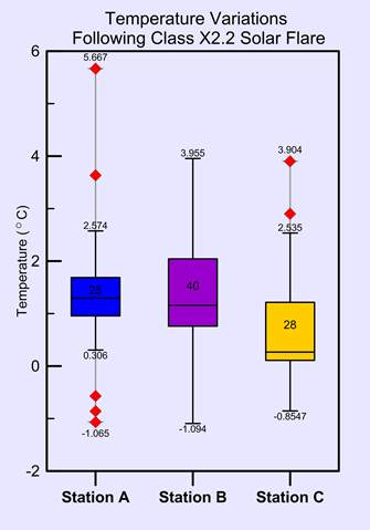 任意のプロットの任意の部分にラベルを表示させることができます。Grapher 9 では、作成した box-whisker プロットのすべての場面においてラベルを表示を表示できる機能が追加されました。