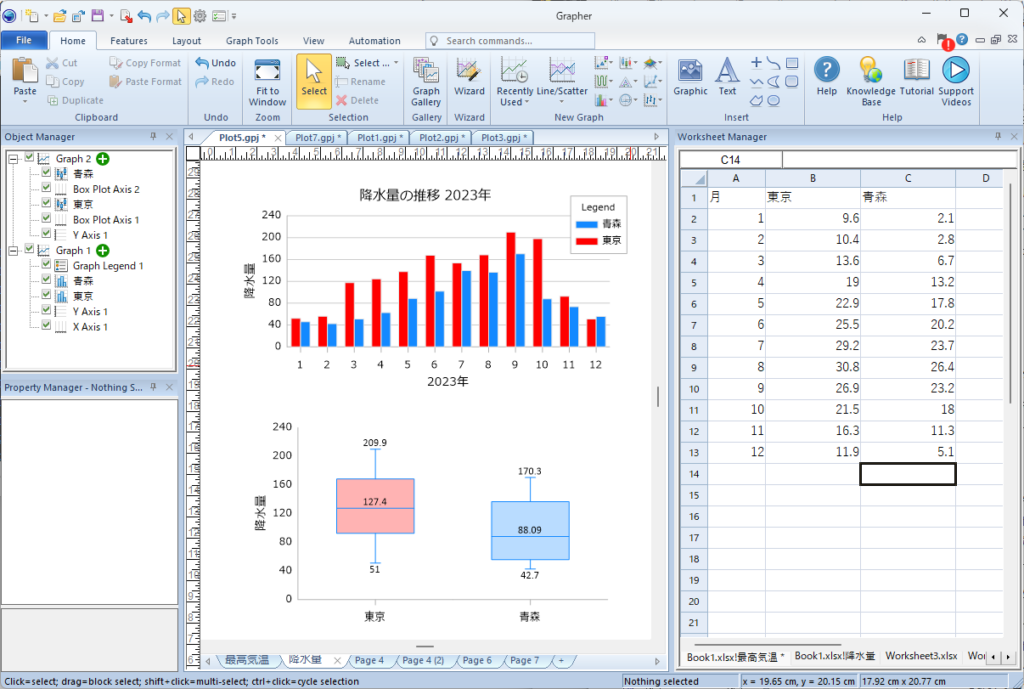 - Grapher のプロットページに設定したレイアウト(見出し、プロットの配置、テキストの配置、図の配置)は、別のプロットページに簡単に複製できます。同じテーマの異なるバージョンとして2回目以降のひな形に利用することができます。