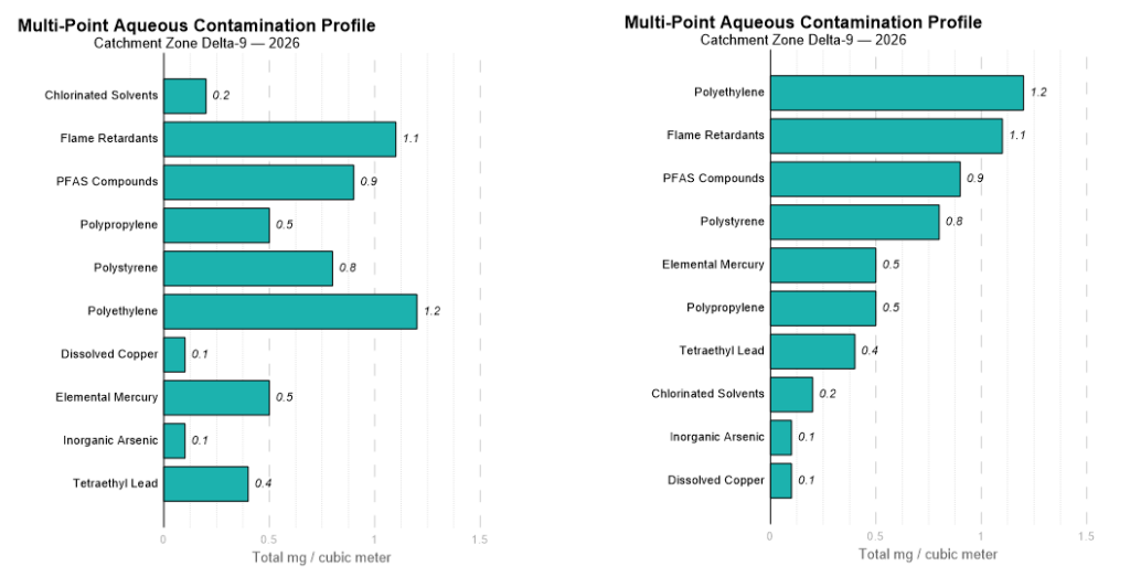 積み上げ棒グラフは、合計が重要になる場合に最適です。個々のパーツが全体にどのように寄与しているかを示すことが可能で、例えば、総濃度における汚染物質の割合や、サンプル全体の深度における物質の種類などを視覚的に把握できます。グラフを見る人は、この構造から全体と部分の両方を一度に理解できます。
