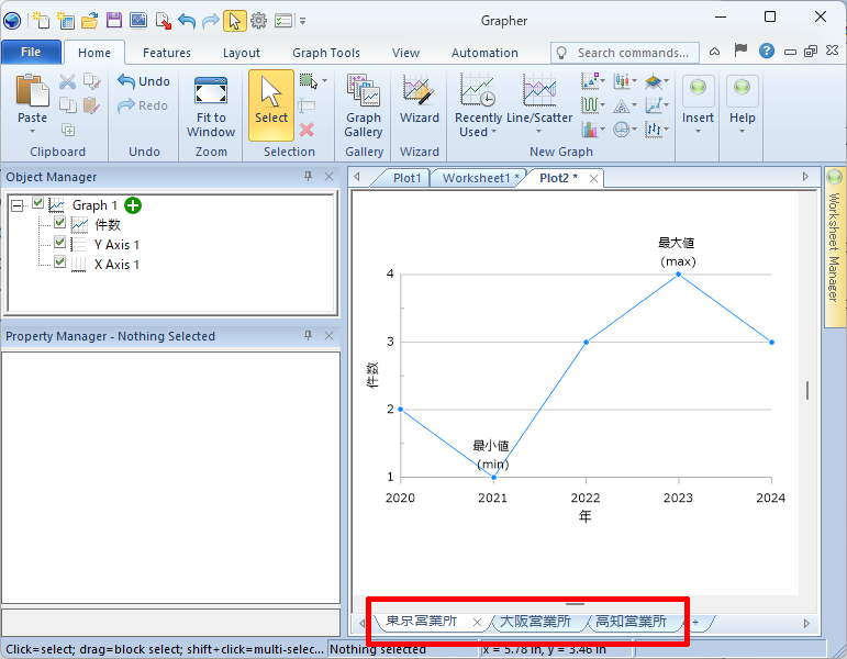 Grapher で作成した複数ページを単一の PDF ファイルにエクスポートする