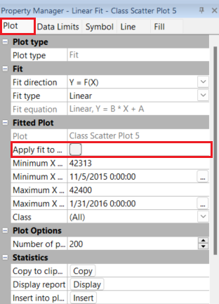 - Fitted Plot セクションの Apply fit to entire plot のチェックを外します。