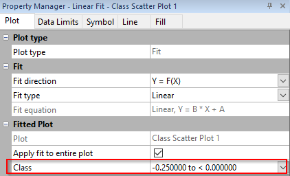 - Fitted Plot セクションの Class フィールドで、当てはめをおこなういずれかのクラスを選択するか、(All) を選択します。