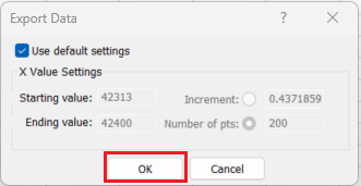 - Graph Tools | Plot Tools | Export Data をクリックします。