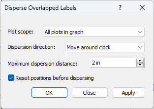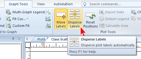 - Graph Tools | Plot Tools | Disperse Labels をクリックします。