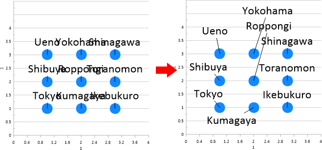 - Disperse Overlapped Labels ダイアログが表示されますので、目的に応じて分散させる設定を調整します。