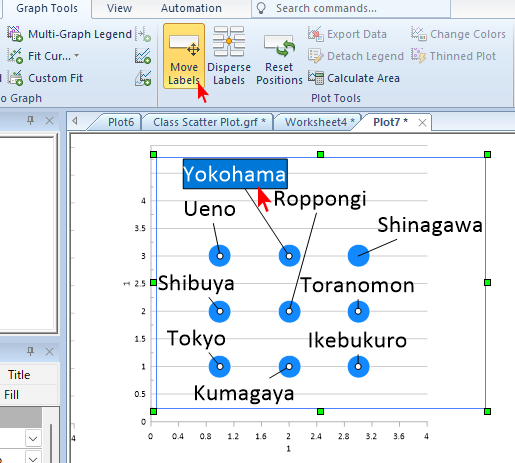 - Graph Tools | Plot Tools | Move Labels コマンドをクリックします。