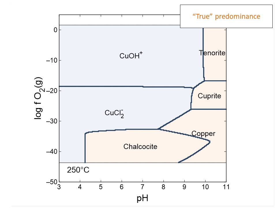 Xtplot に任意の元素または基本化学種エントリーの支配状態 (Predominance) ダイアグラムを表示できるようになりました。また、その領域における鉱物の分布を組み合わせの相図として表示することもできます。