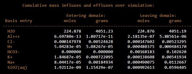 反応輸送コードのシミュレーションごとに流入 (Influx) と流出 (efflux) の正味質量に関するサマリーがレポートされるようになりました。