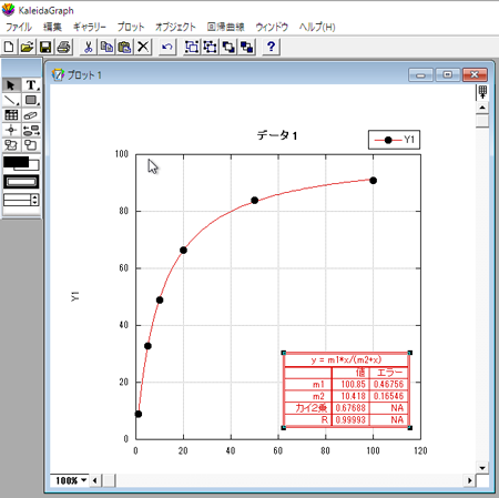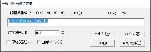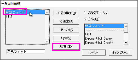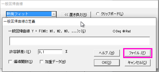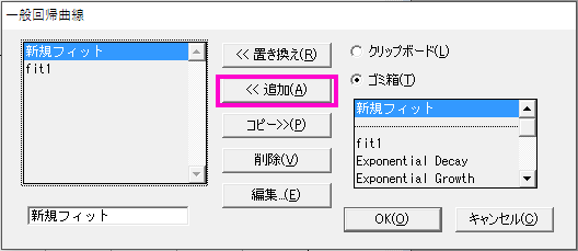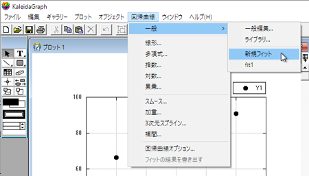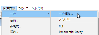 - 回帰曲線 → 一般 → 新規フィット を選択します。
