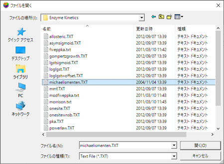 ファイル → 開く を選択して、次のディレクトリからカーブフィット式を選んでください。