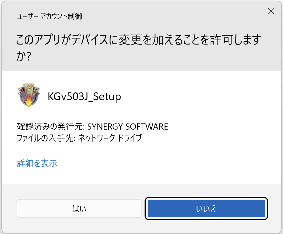 6. ユーザーアカウント制御画面が表示されますので、確認して許可する場合ははいをクリックして進みます。