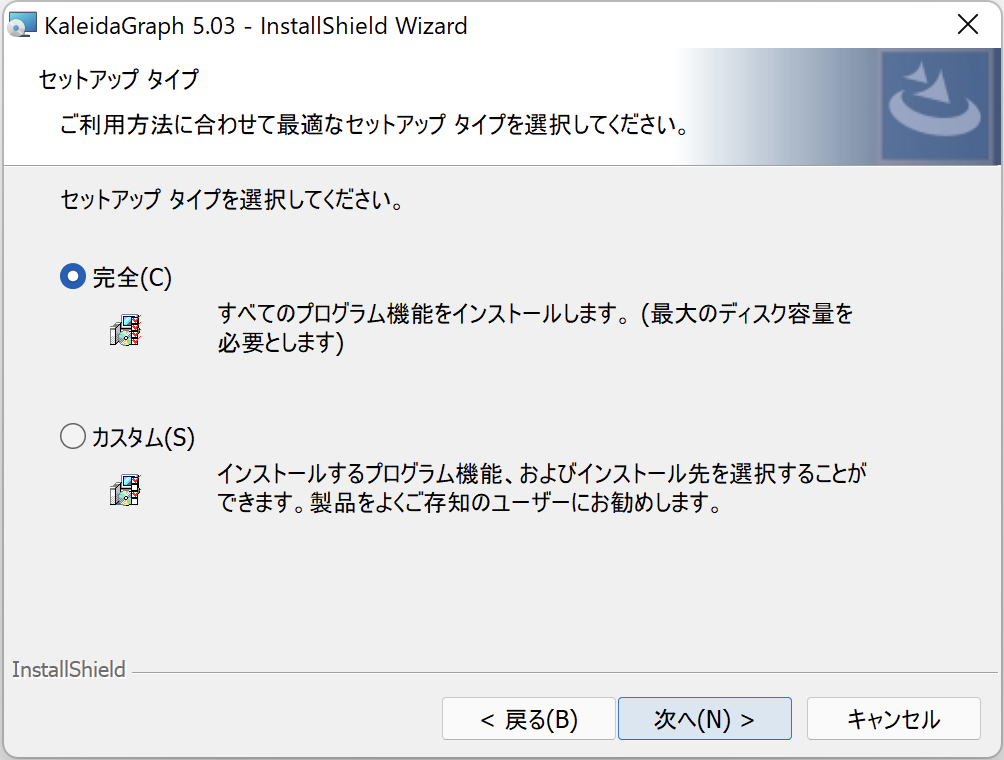 10. セットアップタイプを選択できます。デフォルトの完全を選択して次へをクリックします。