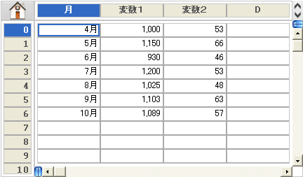 - まず、2変数を持つデータを用意します。