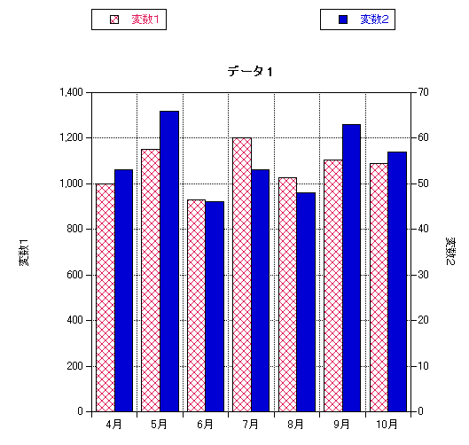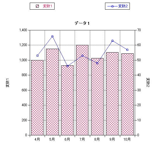 A. 2つの変数の棒グラフを用意し、変数のいずれか一方の「塗りパターン」を「ライン」に変更することで作成できます。