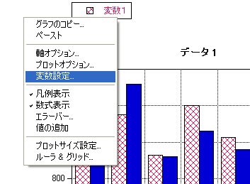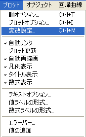 - メニューバーの「プロット」から変数設定ダイアログを選択します(右クリックして現れるコンテクストメニューから選択することもできます)。