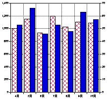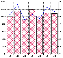- OK ボタンを押すと棒グラフと折れ線グラフを組み合わせたグラフができあがります。