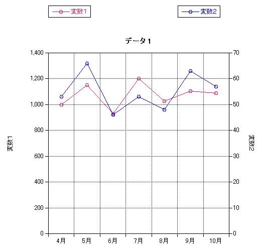 両方の変数の塗りを「ライン」に変更すると、以下のように単純な折れ線グラフになります。