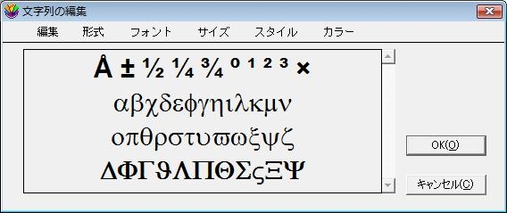 Windows版の場合、フォントを任意の英語フォント選択後、ALT + 197 のように、ALTキーを押しながらキーボードのテンキーで文字コードを入力します。ギリシャ文字はフォントをSymbolに切り替えて通常入力します。