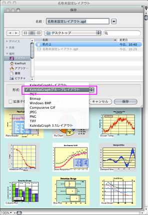 xxxxx.qpl」と「KaleidaGraphグループレイアウト」の拡張子と同じになります。混同しないようご注意願います。
