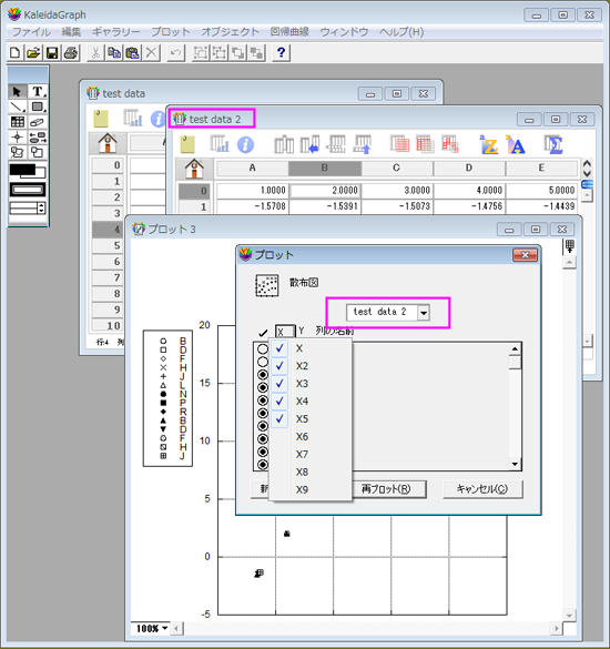 ひとつのワークシートで選択できる X 変数の最大数は、9 変数までの仕様となります。