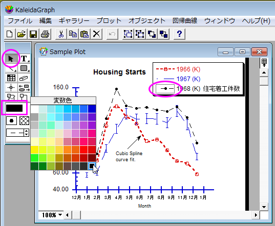 - 凡例内の変数色を変更する場合は、選択ツールでマーカーを選択し、変数カラーアイコンからご変更下さい。
